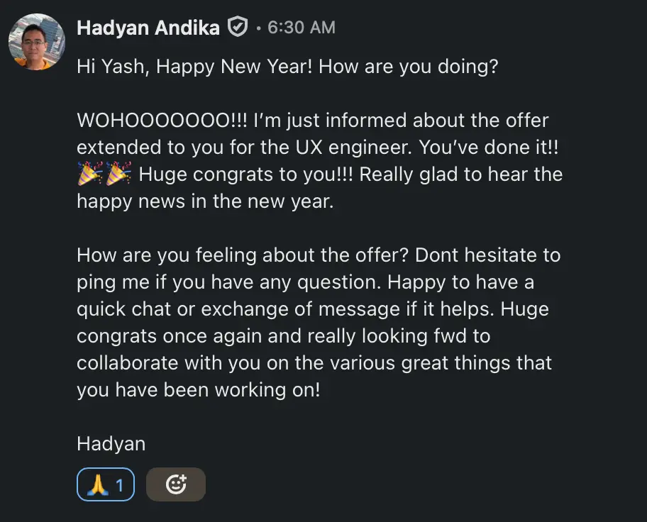 Patrick Keller, head of UX, from Google has been really helpful in giving me those chances to talk to different hiring managers and make the most out of current situation. He is also someone who teaches UXers and such mentorship opportunities are truly life changing.