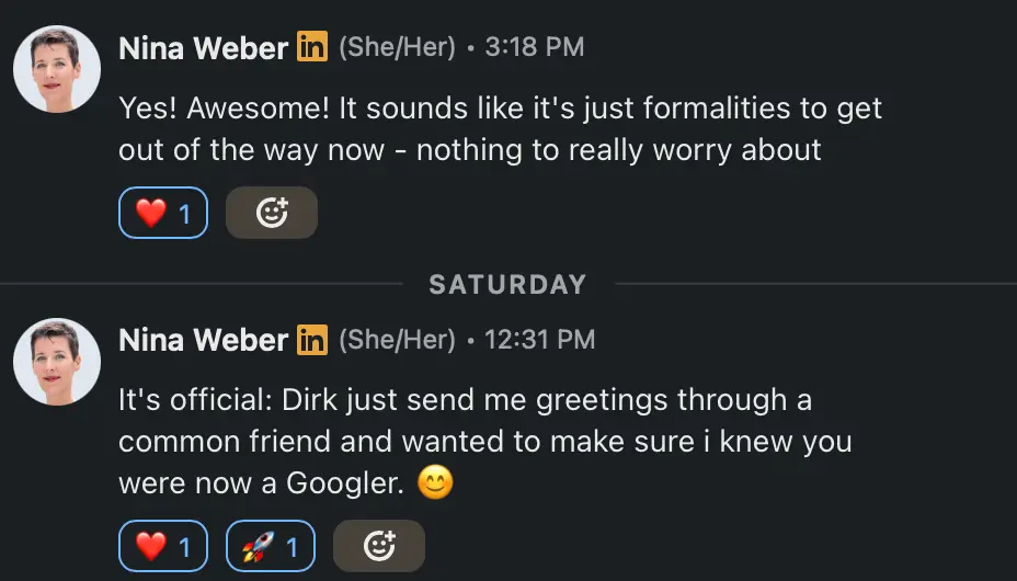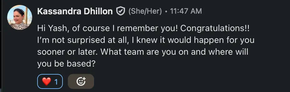 Kate from Google Ads team has been resourceful and a fantastic connection to understand what the hiring teams wants!