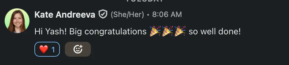 I documented a significant portion of Mozilla's MDN Web Docs and in record time. Glad Estelle was working alongside on them and she appreciated and recognized my work.