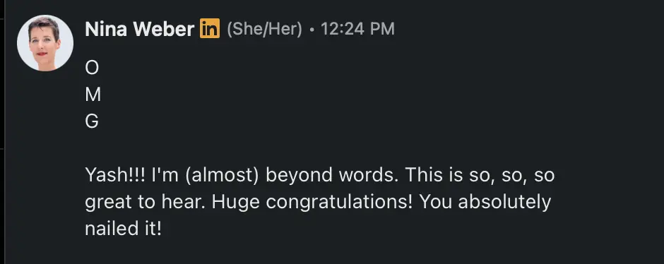It has been an honor to be mentored by Nina Weber, with her 18 years of UXR experience at Google, truly helpful to navigate my career.